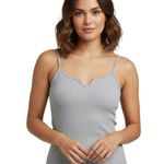 Top de damă gri reiat cu bretele subțiri 24POS47030