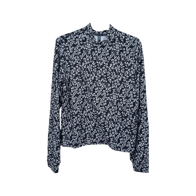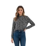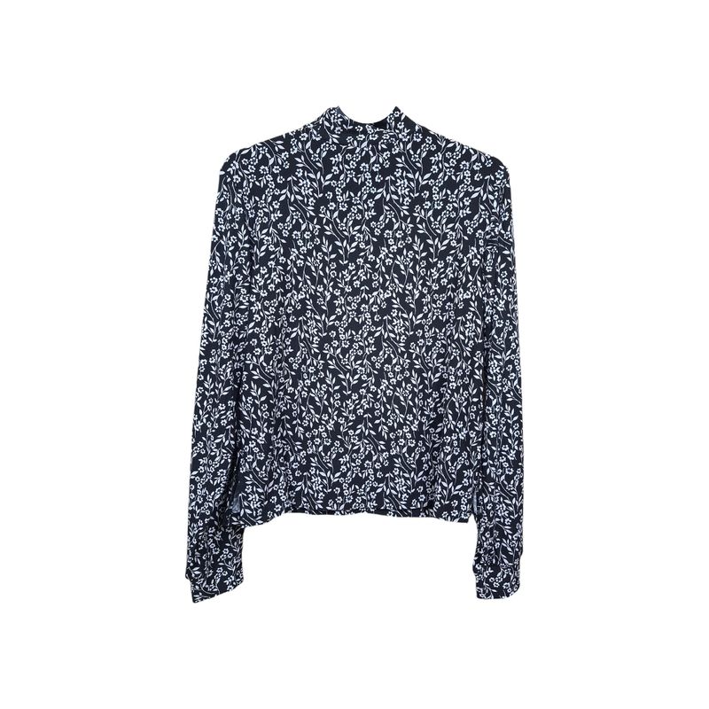 Bluză Neagră Florală cu Guler Semi-Înalt 24POS47D22