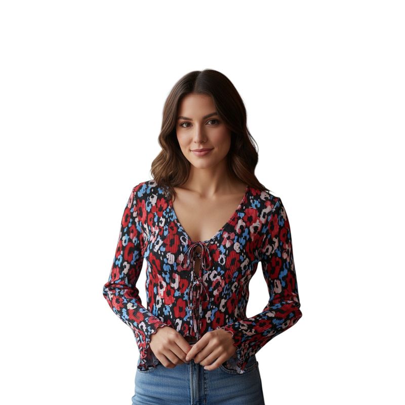 Bluză Multicoloră cu Imprimeu Floral și Șnur 24POS47E64