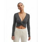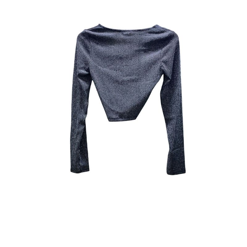 Bluză Damă Crop Top Neagră cu Fir Metalic și Nod Frontal 24POS47K10