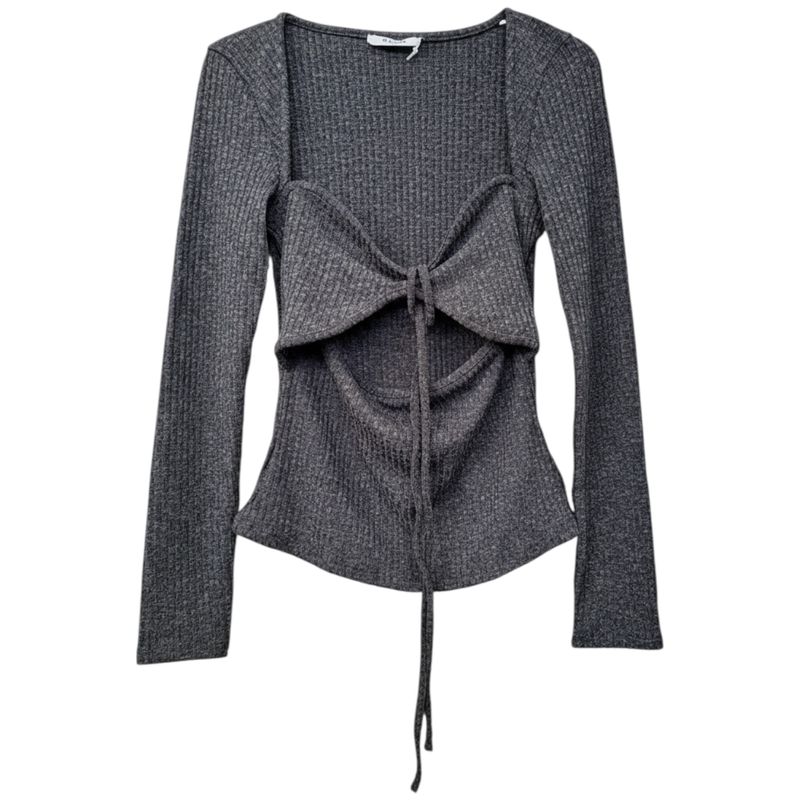 Bluză Damă Gri Antracit Striată cu Decolteu 24POS47K22