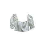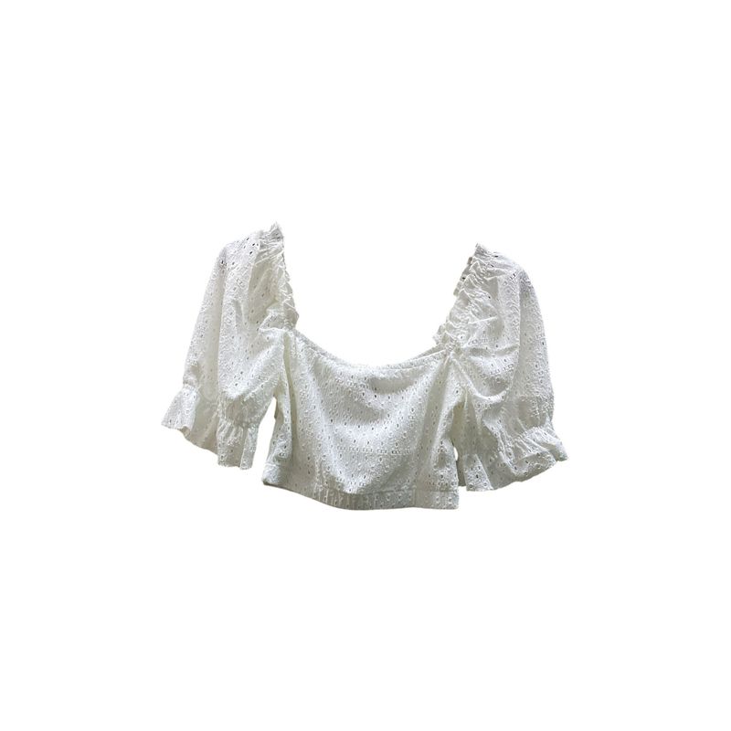 Bluză Damă Crop Top Albă cu Broderie și Mâneci Bufante 24POS47K25