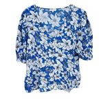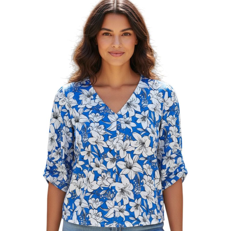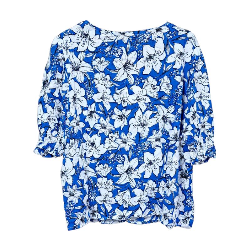 Bluză de damă albastră cu imprimeu floral și nasturi 24POS47L10
