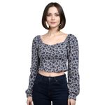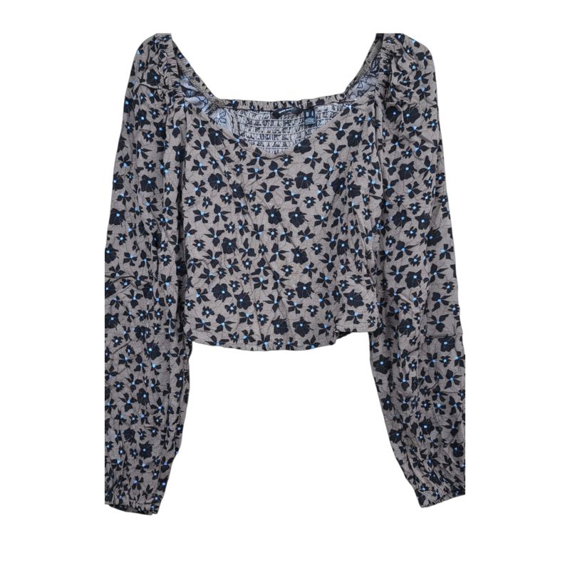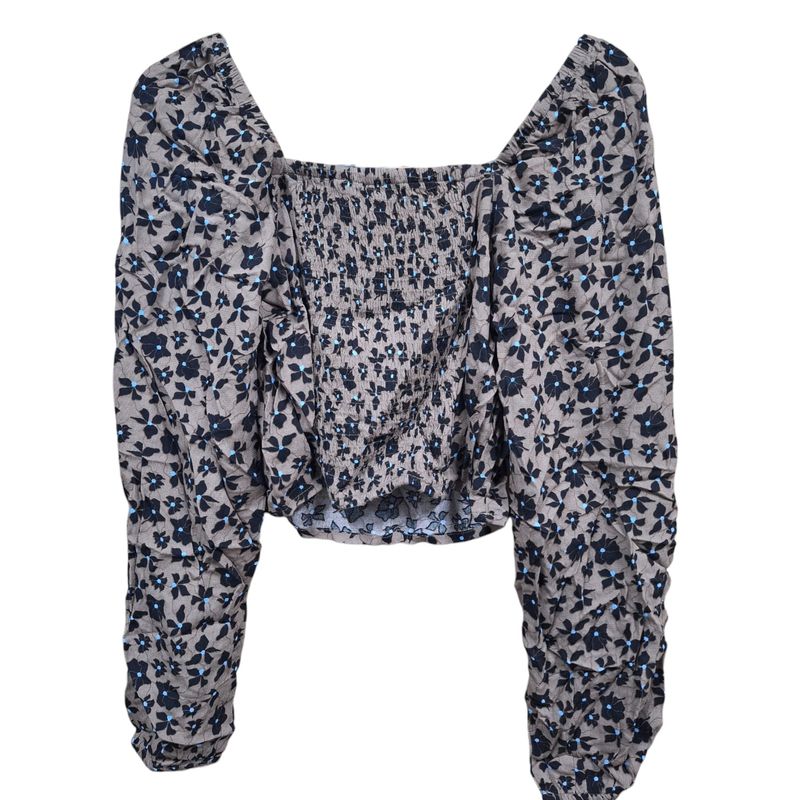 Bluză de damă maro cu imprimeu floral și aspect încrețit 24POS47M22