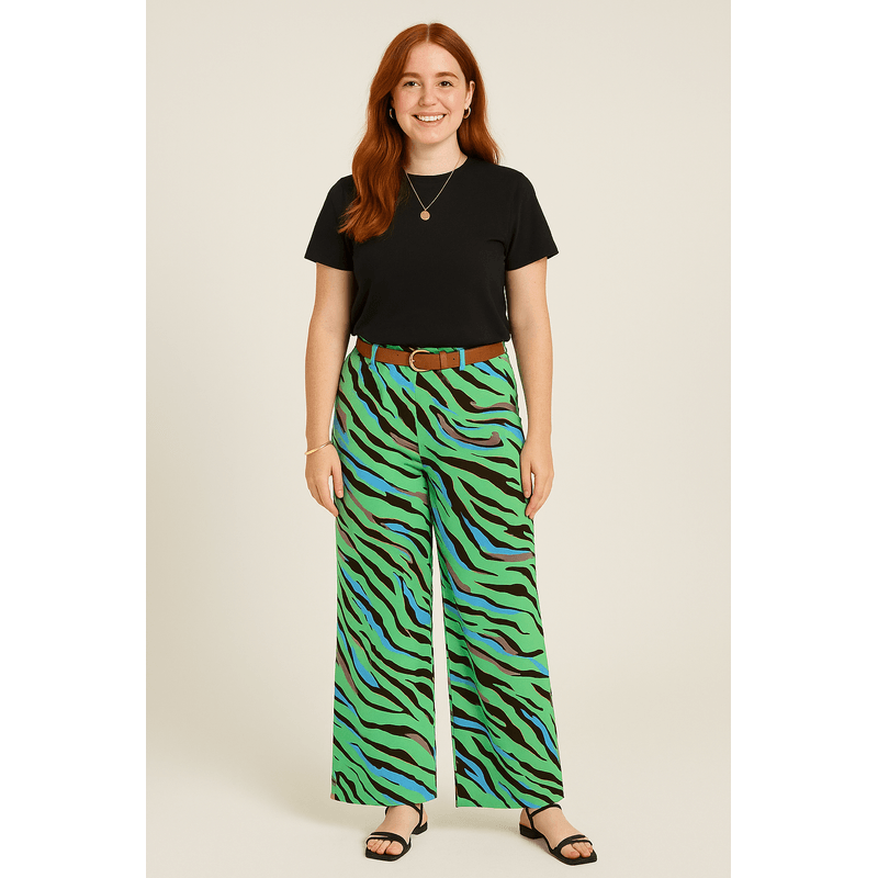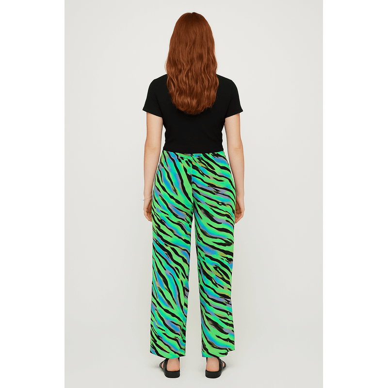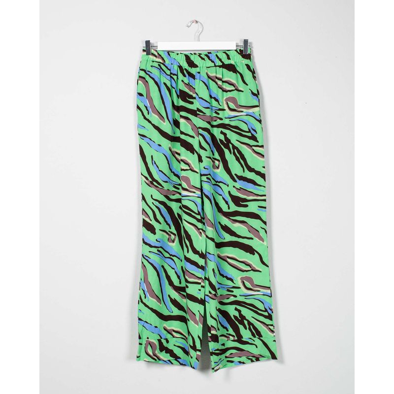 Pantaloni wide cu imprimeu animalier verde – 100% polyester, 100% curaj 24SDP01047