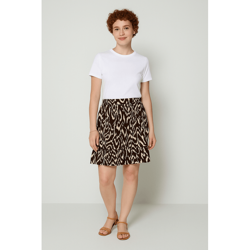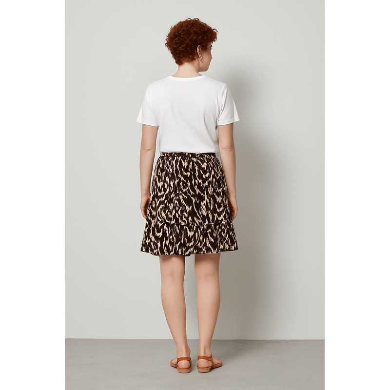 Fustă scurtă cu imprimeu abstract și volan la tiv – 100% bumbac, căptușită 24SDP01199