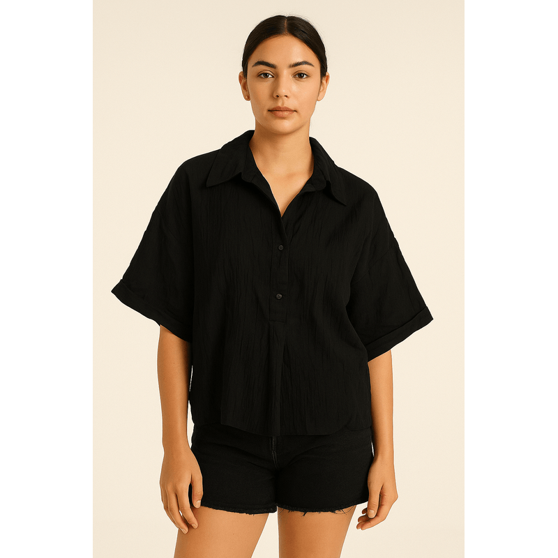 Cămașă neagră oversized – Bumbac & in 24SDP01206