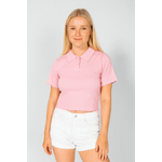 Tricou crop damă cu guler polo și margini ondulate 24SDP01253
