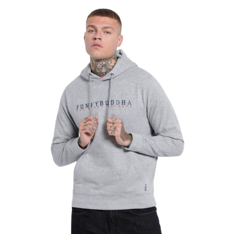 Hanorac gri cu glugă și logo Funky Buddha 25ALX06018