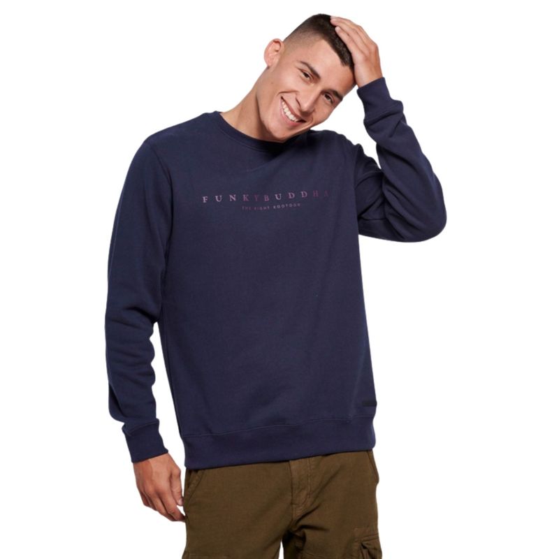 Pulover bărbați Funky Buddha, bleumarin, cu logo frontal 25ALX06046