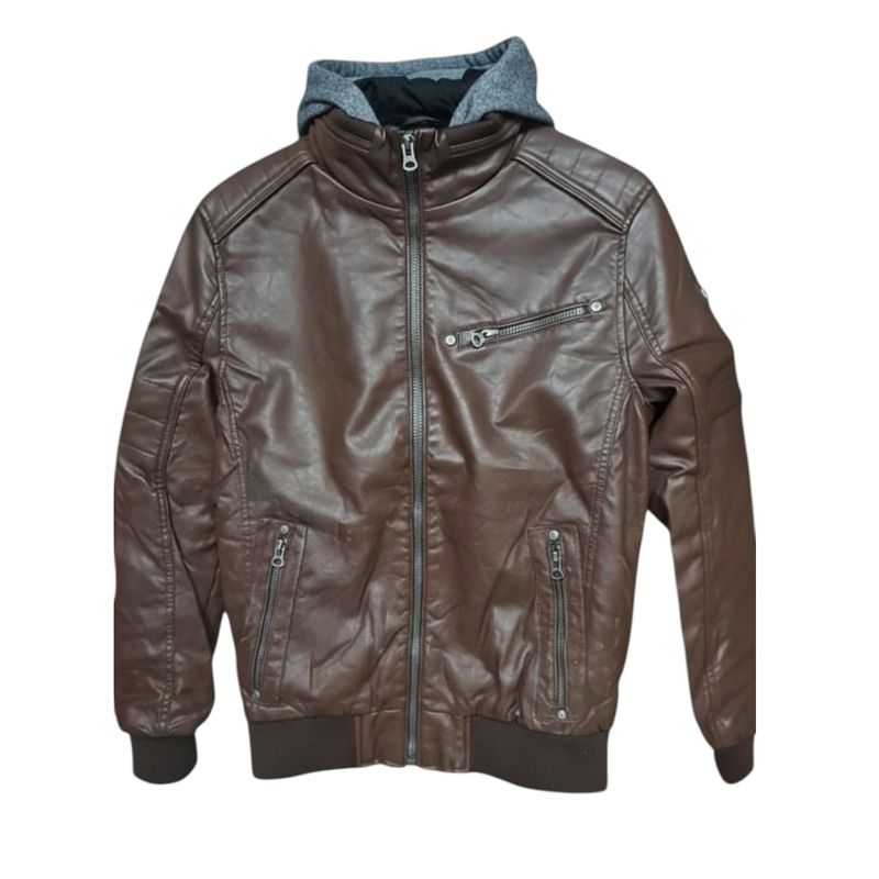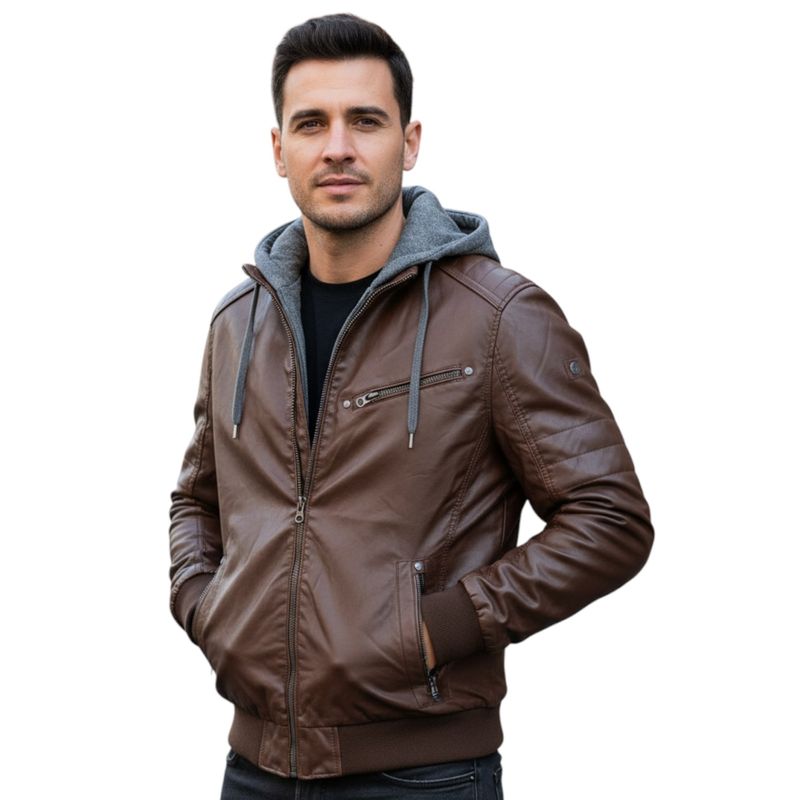 Geacă Bărbați din Imitatie de Piele, cu Glugă Textilă 25ALX09001