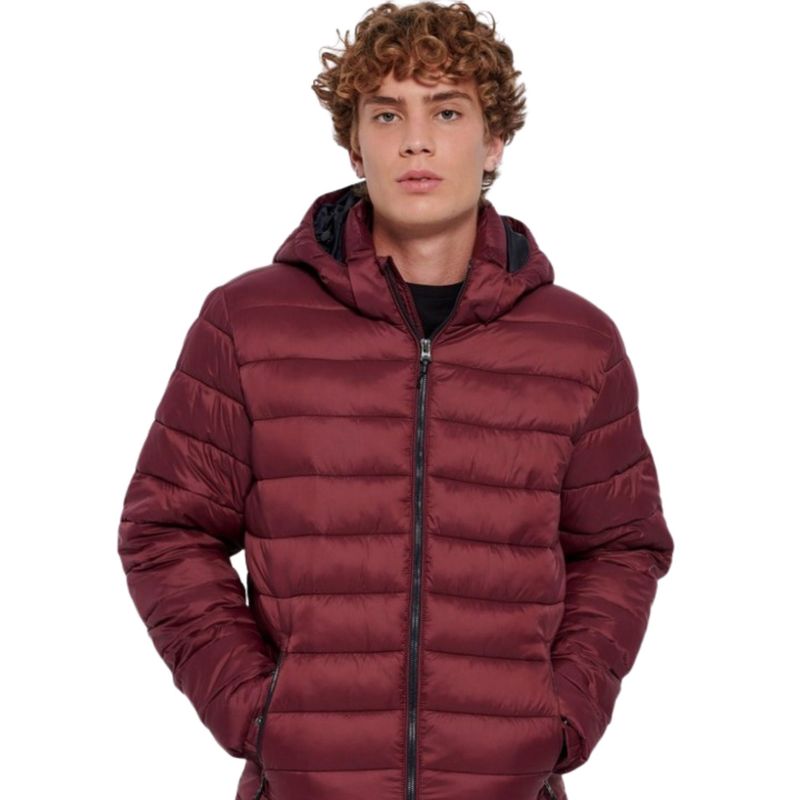 Geacă bărbați bordo matlasată cu glugă 25ALX09026