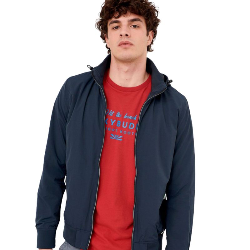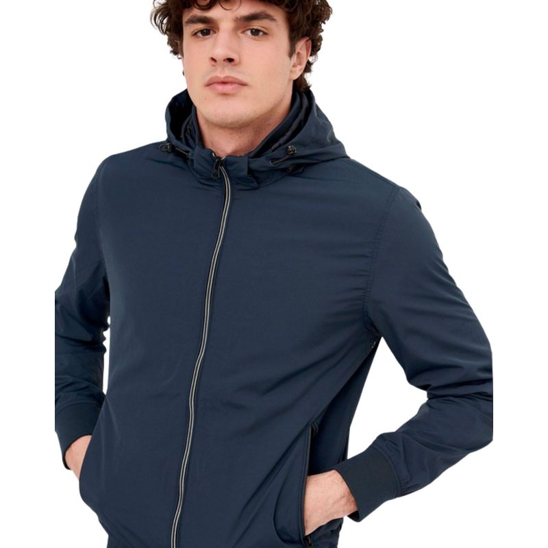 Jachetă bărbătească subțire cu glugă, bleumarin 25ALX09030