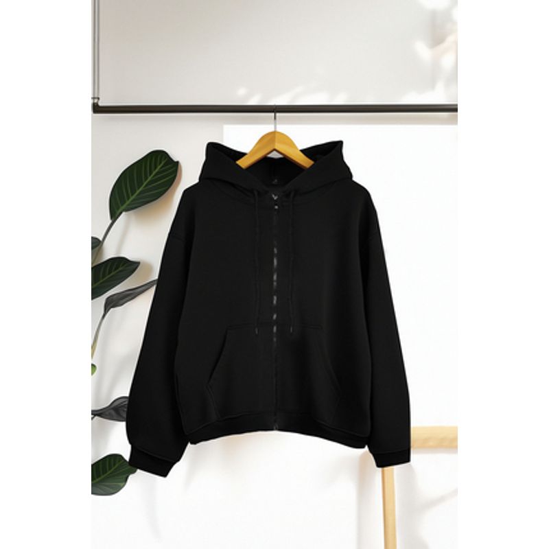 Hanorac negru cu fermoar și glugă 25KKW01J02