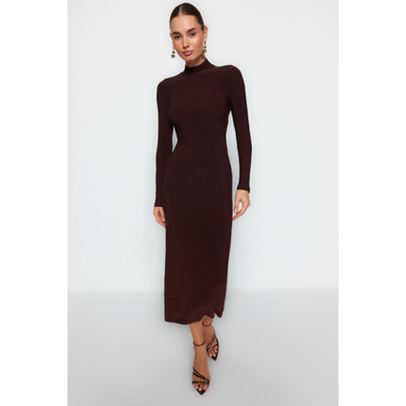 Rochie midi cu maneca lunga si guler inalt 25KKW01M97