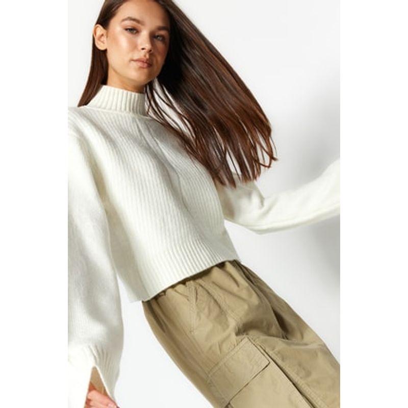 Pulover din tricot cu guler inalt si mansete largi 25KKW01U29
