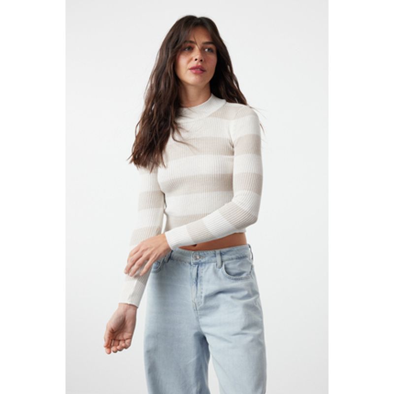 Bluză Tricotată în Dungi cu Guler 25KKW02T27