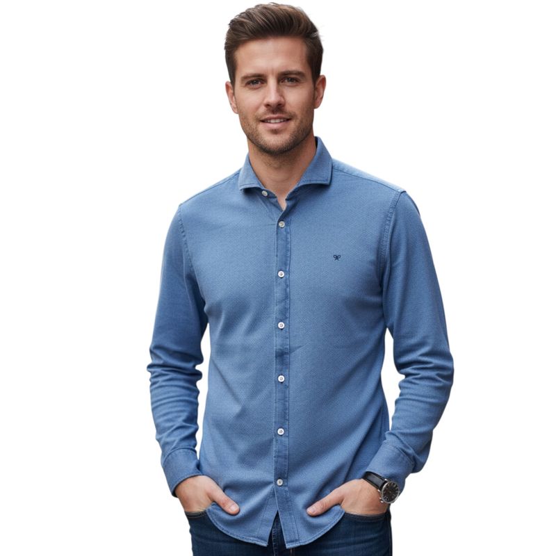 Cămașă bărbătească albastră cu mânecă lungă SILBON 25KOS35015