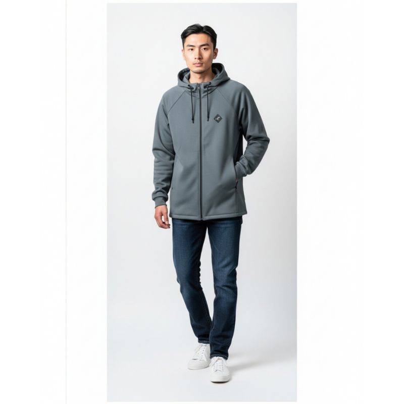 Hanorac Bărbați Gri cu Fermoar și Glugă din Bumbac 25KOSD3002