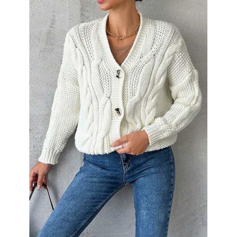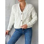 Cardigan alb din tricot gros cu torsade 25MEX11007