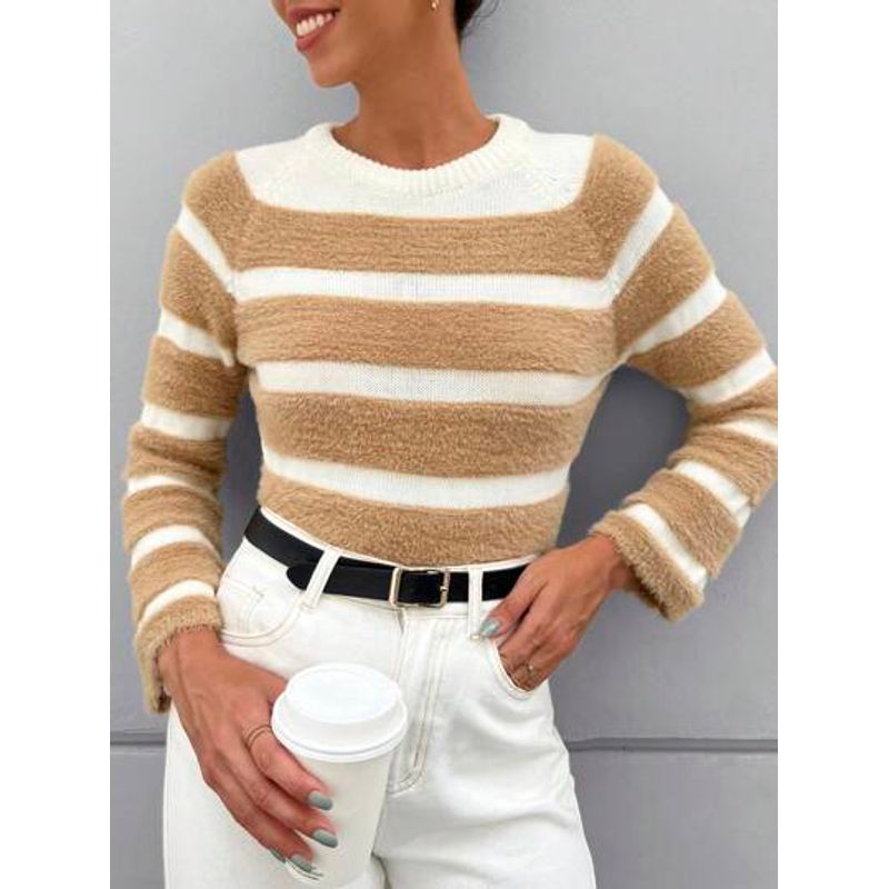 Pulover pufos cu dungi late și croi lejer 25MEX11024