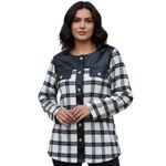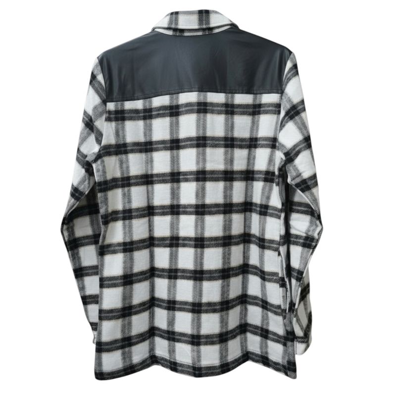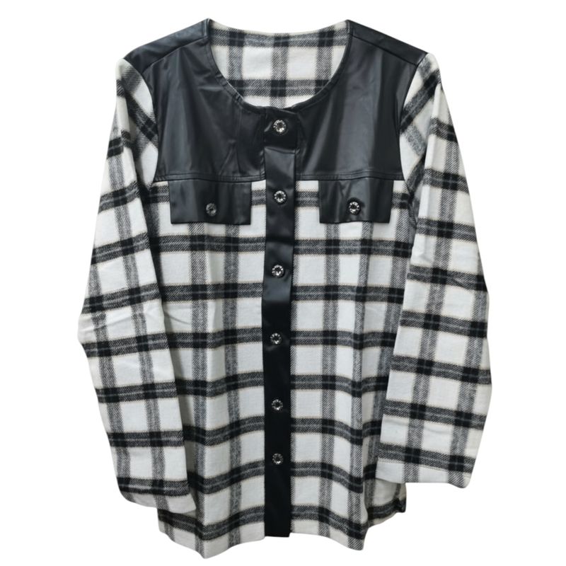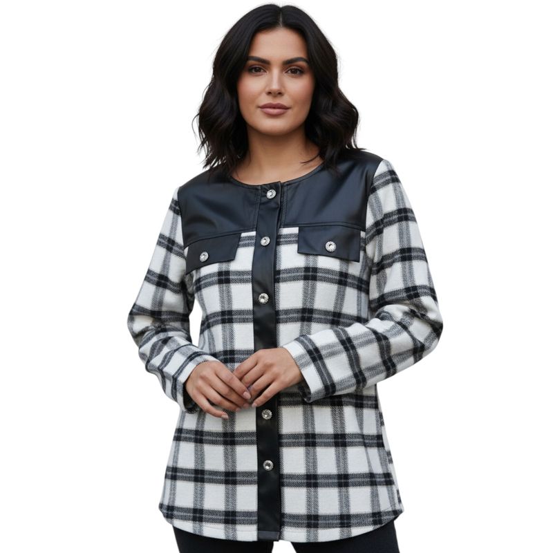 Jachetă damă în carouri alb-negru cu detalii din piele ecologică 25MEX11083