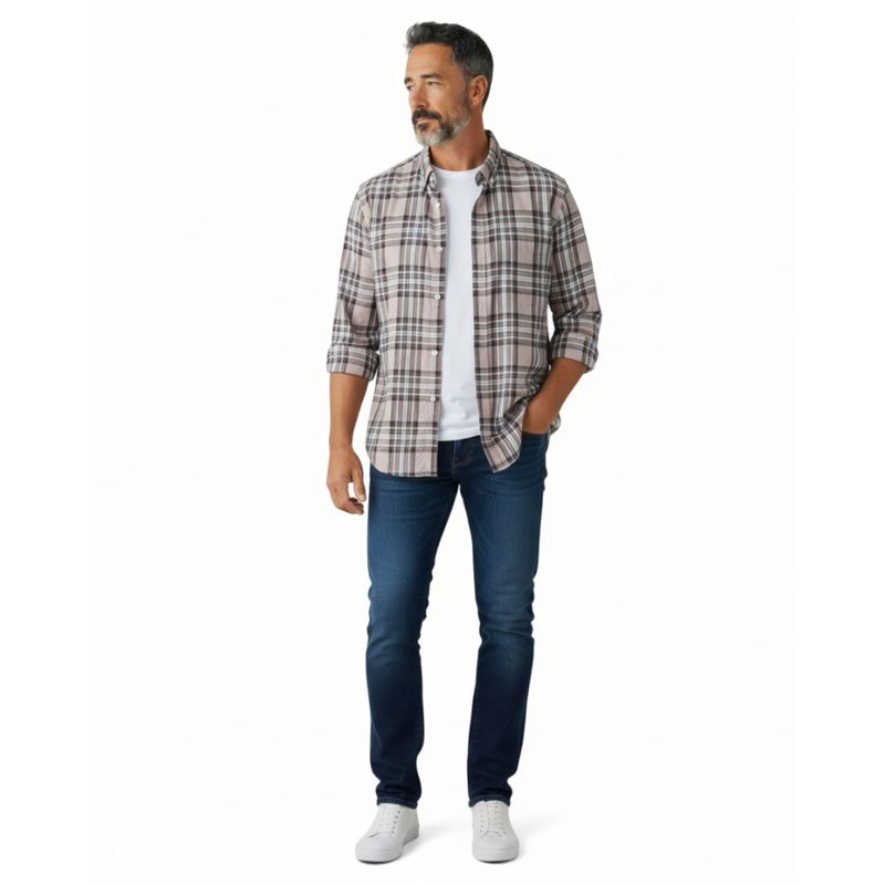 Cămașă Bărbați în Carouri Bej din Bumbac Elastic 25MEX17044
