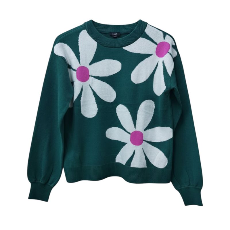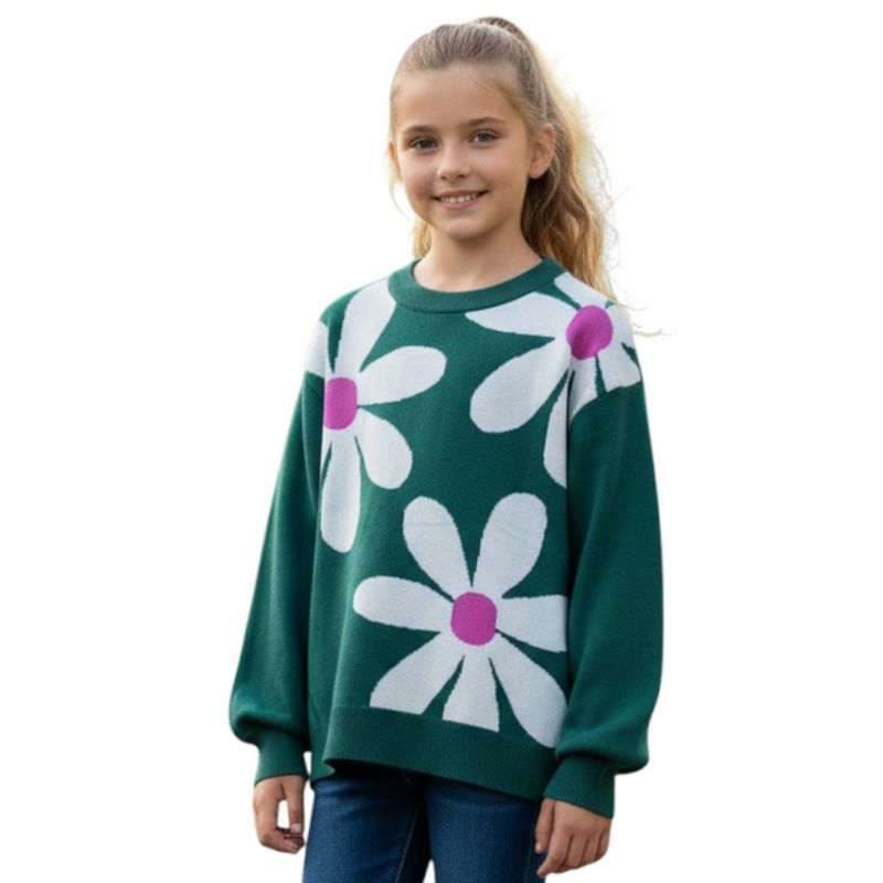 Pulover verde pentru copii cu imprimeu floral 25MKF06003