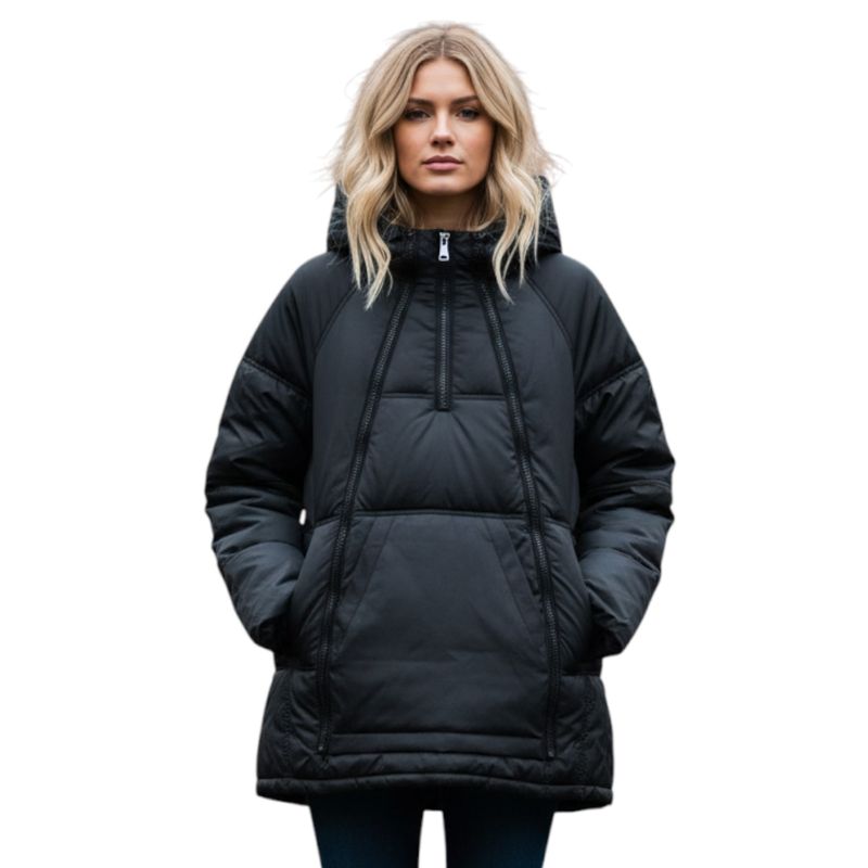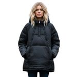 Geacă damă neagră matlasată cu fermoare 25MNB22004