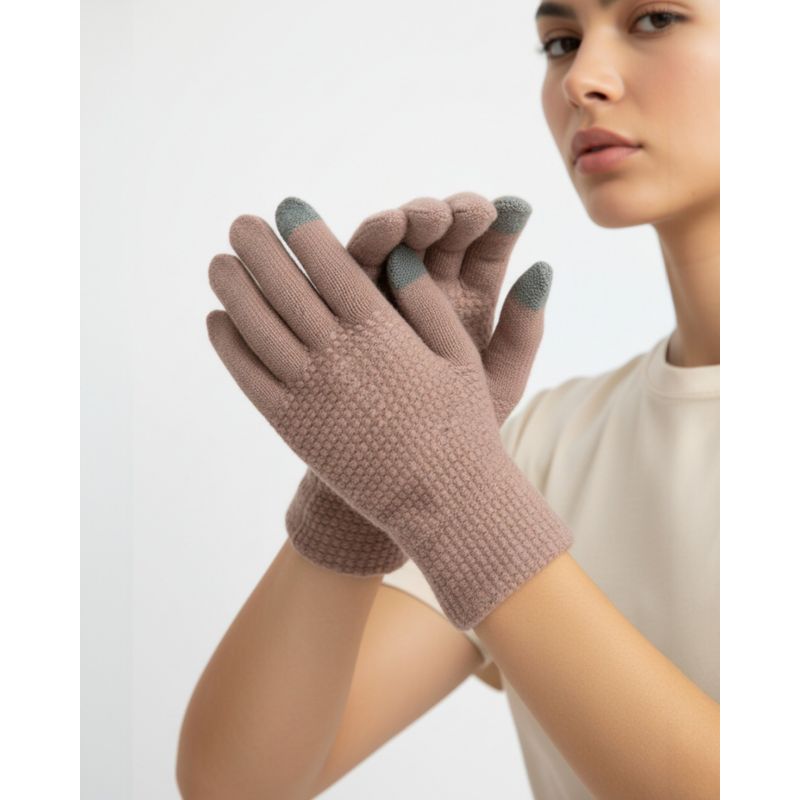 Mănuși Damă Tricotate Model Romburi - Roz 25MNB28006