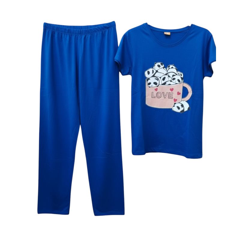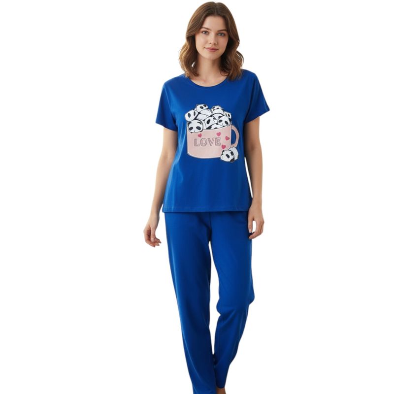 Pijama damă albastră cu imprimeu „Love & Panda” 25MUR20002