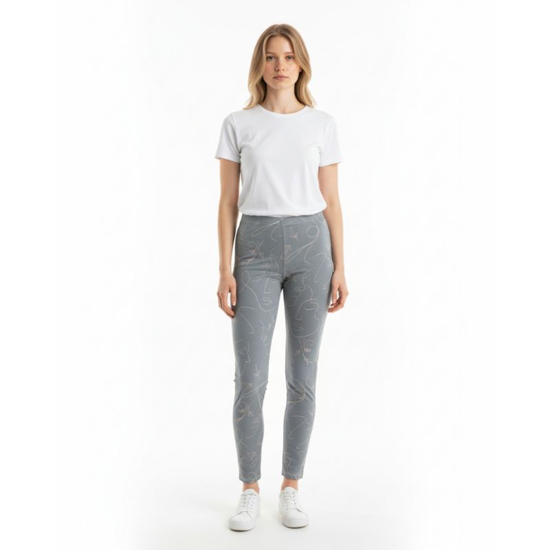 Pantaloni Pijama Damă Gri Bumbac Imprimeu Abstract 25MUR27004