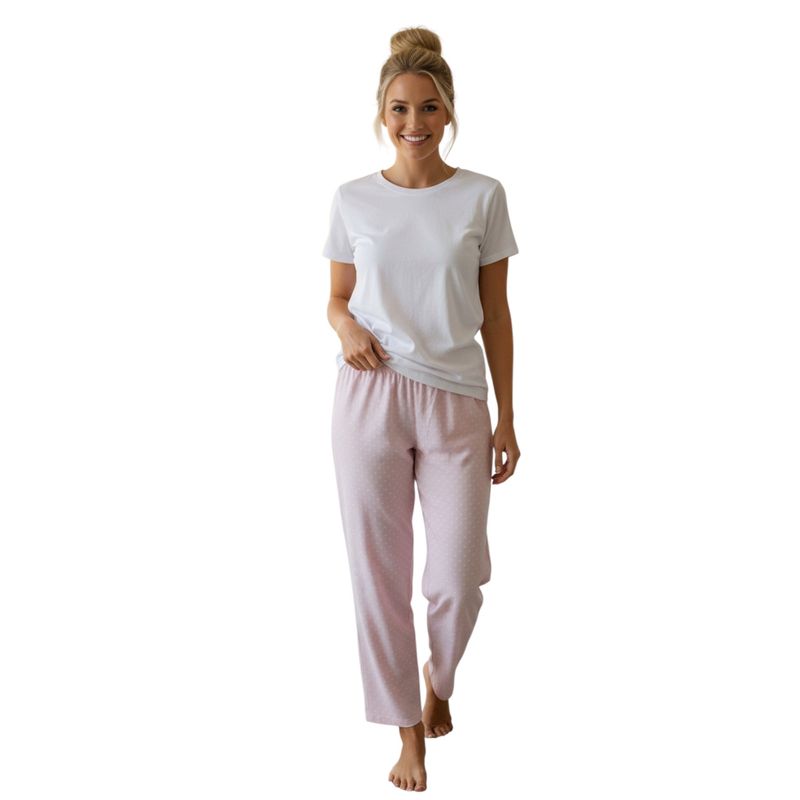 Pantaloni de pijama damă roz cu buline 25MUR27005