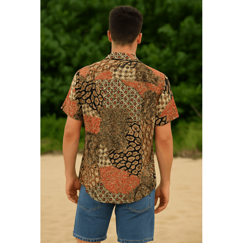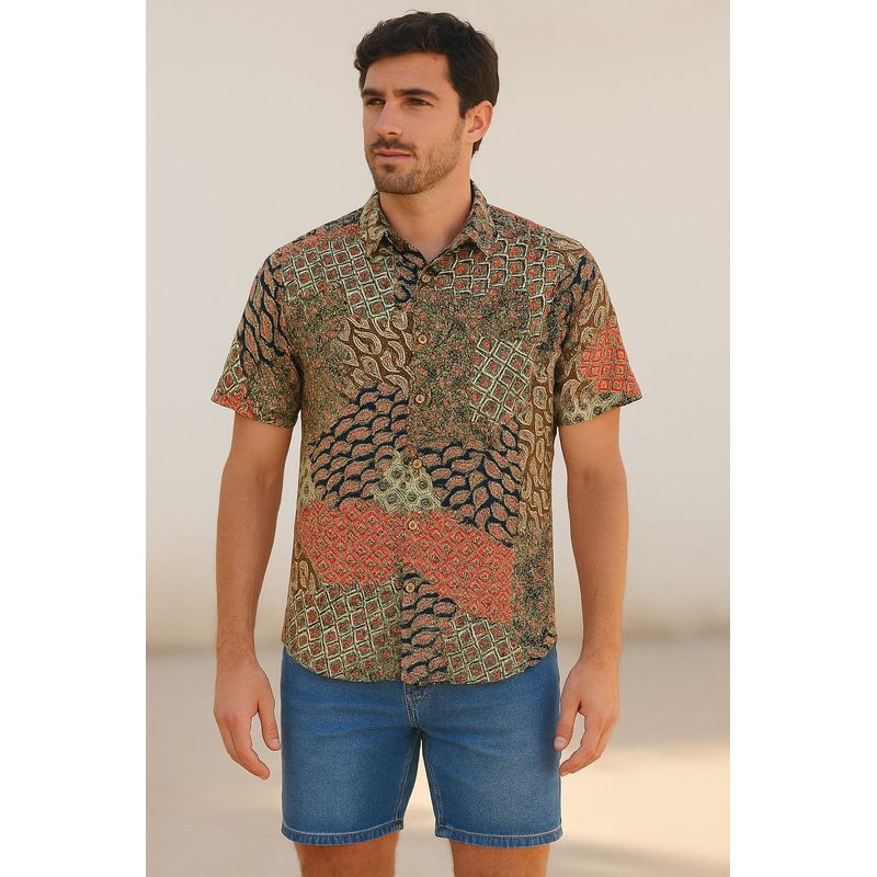 Cămașă cu imprimeu patchwork și croială lejeră 25OFF09008
