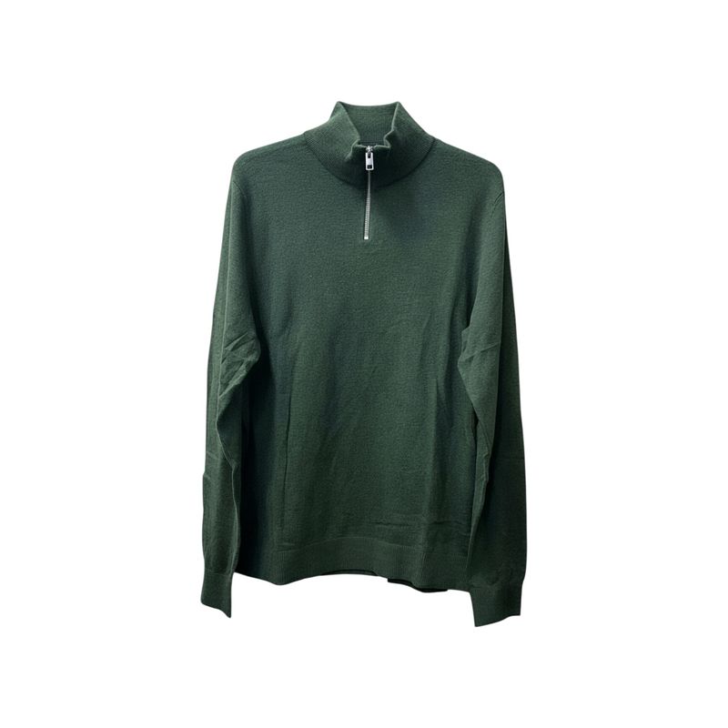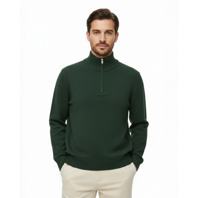 Pulover Bărbați Verde Închis cu Fermoar Scurt și Guler Înalt 25SMA03012