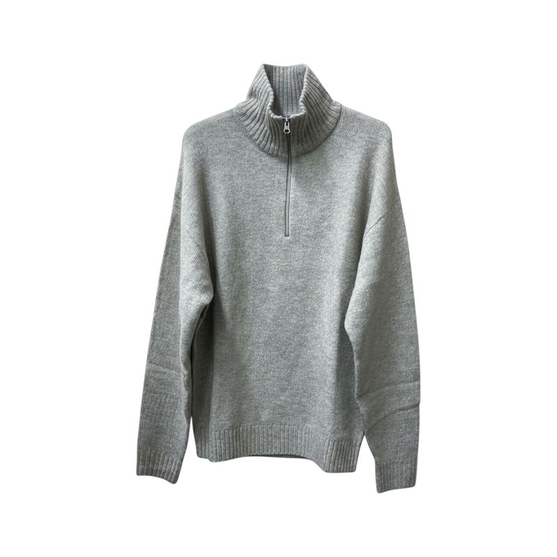 Pulover Bărbați Gri Melanj cu Fermoar Scurt și Guler Înalt 25SMA03013