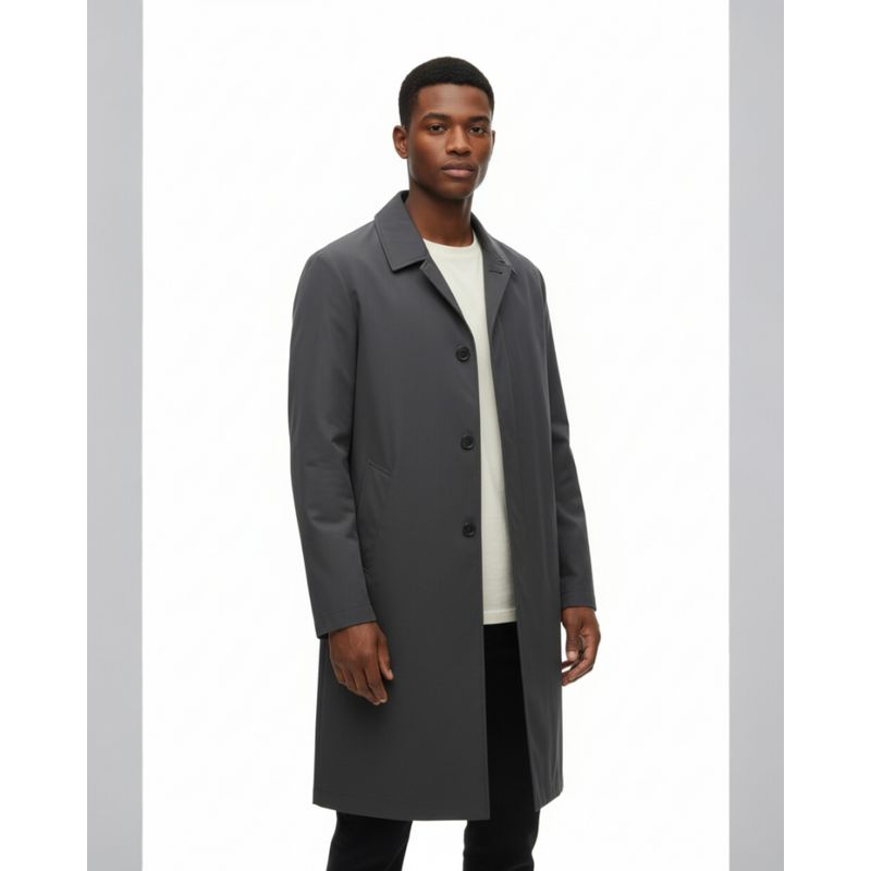 Geacă Lungă Bărbați Tip Pardesiu Gri Antracit Minimalist 25SMA03015