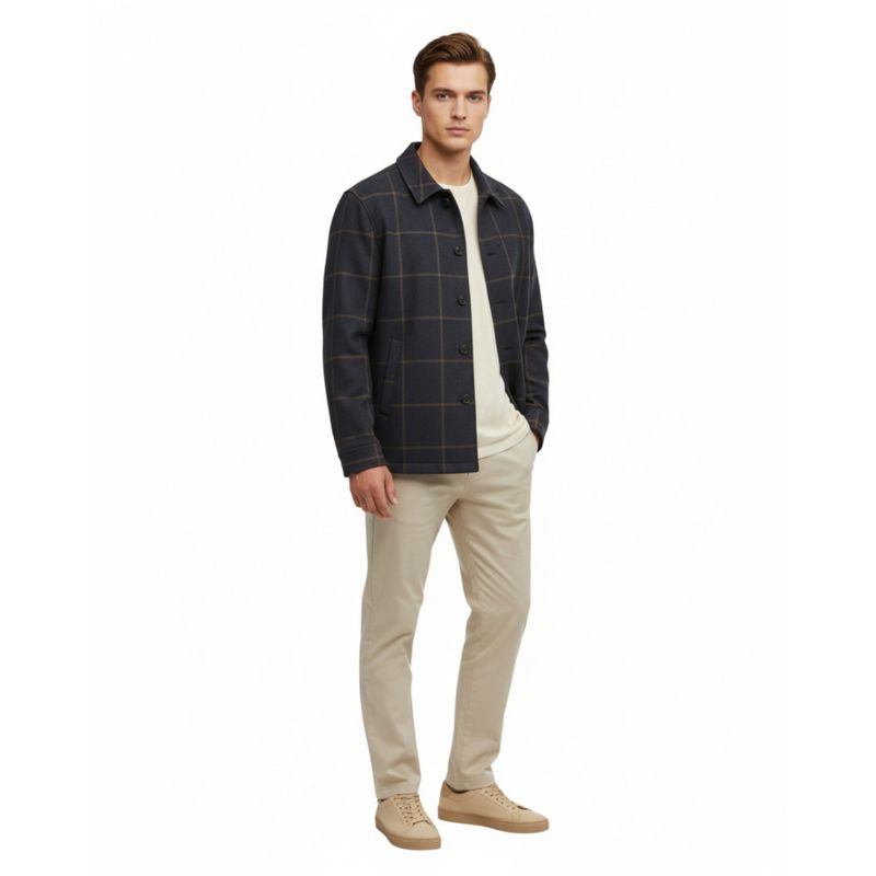 Jachetă Bărbați Albastru Marin în Carouri cu Guler Clasic și Nasturi 25SMA03016