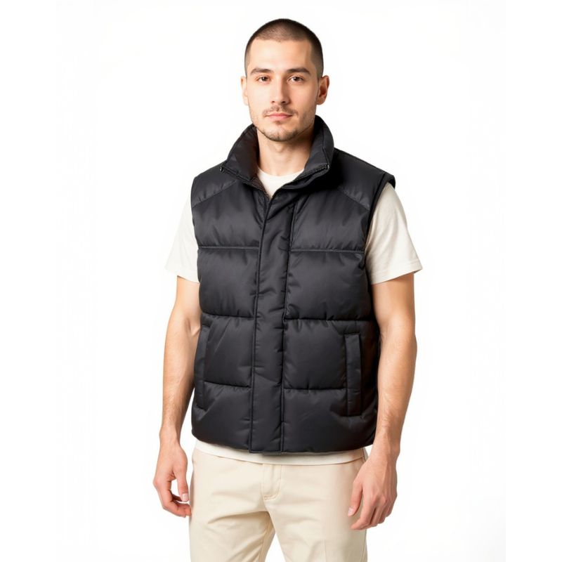 Vestă Bărbați Matlasată Tip Puffer cu Guler Înalt - Negru 25SMA03019