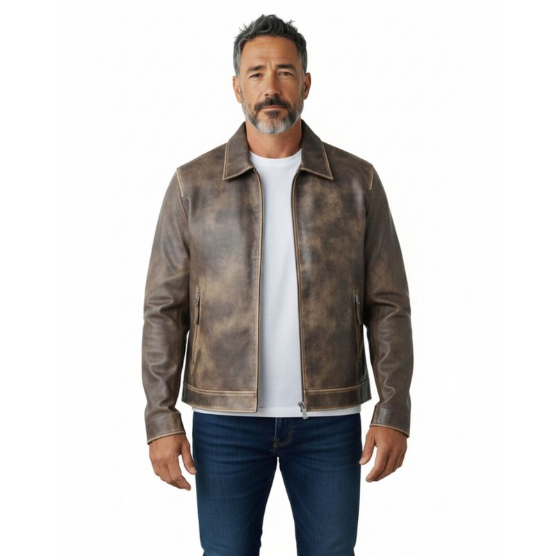 Jachetă Bărbați din Piele Ecologică Maro 25SMA03022