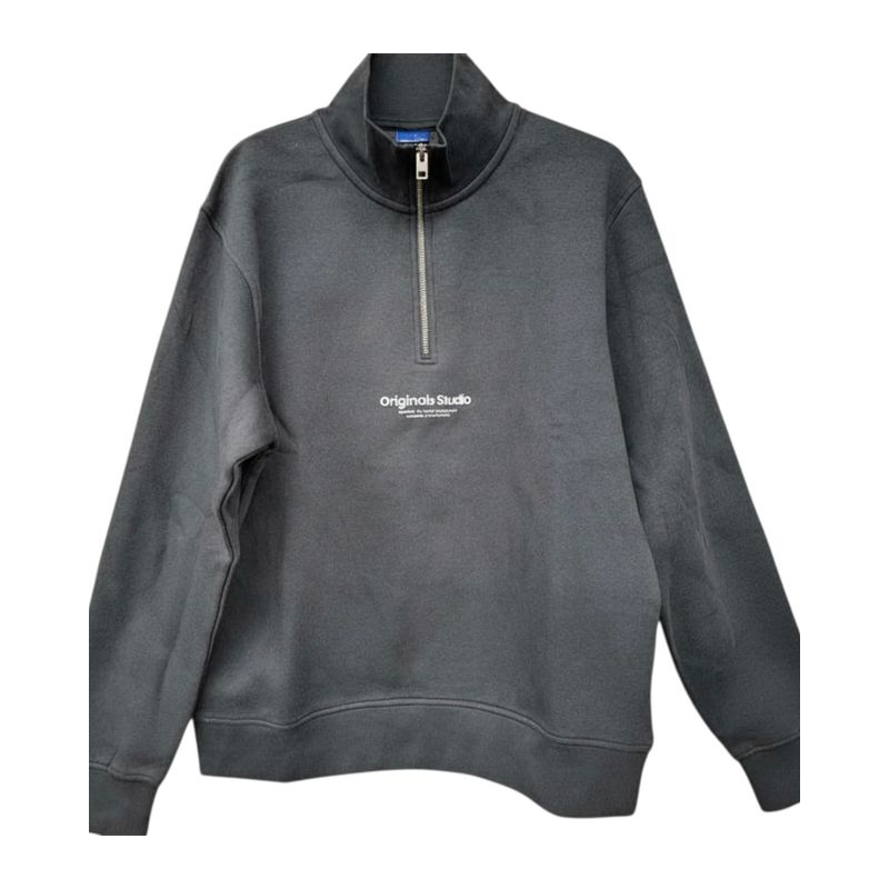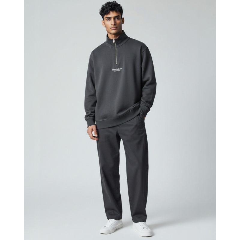 Bluză Bărbați Gri Închis cu Fermoar la Gât și Guler Înalt 25SMA03030