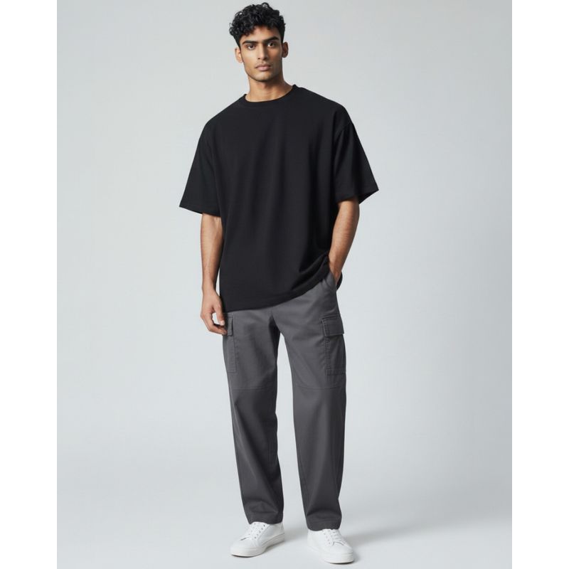 Pantaloni Cargo Bărbați Gri Tapered Fit din Bumbac Elastic 25SMA03038