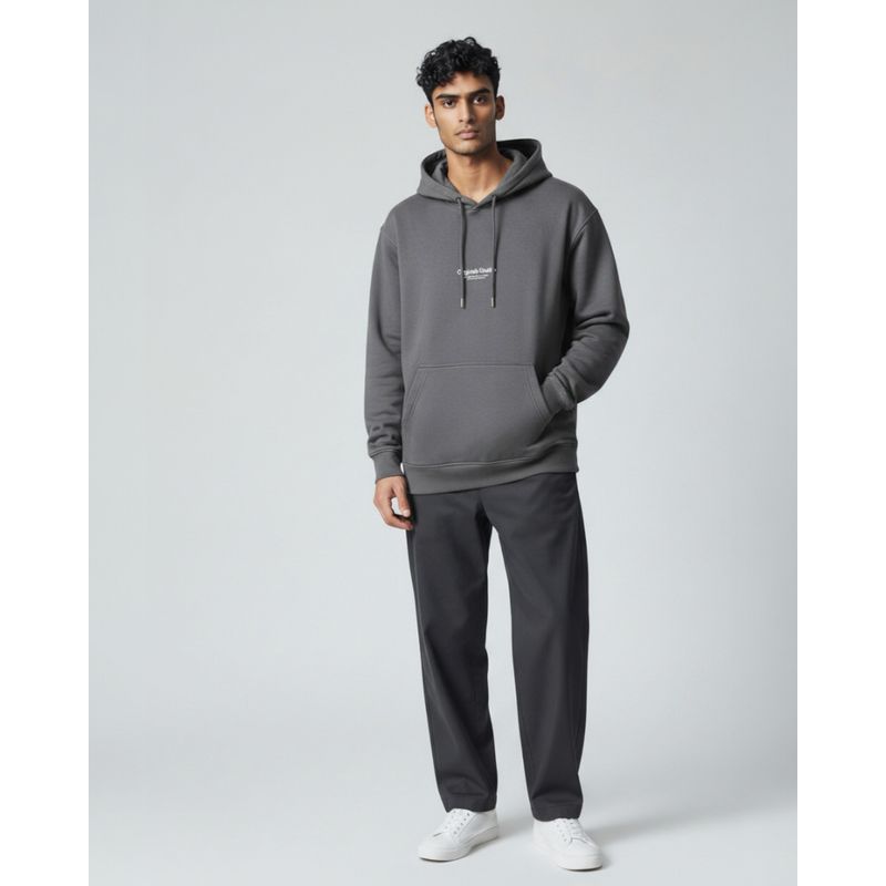 Hanorac Bărbați Gri Închis cu Glugă și Imprimeu 25SMA03041