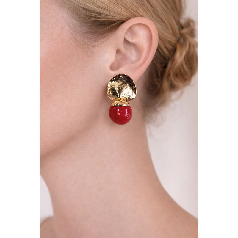 Cercei cu bilă roșie și element metalic 25TAI02005