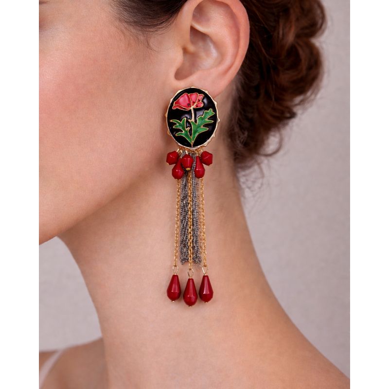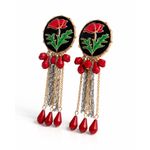 Cercei statement florali cu lanțuri și mărgele roșii 25TAI02010
