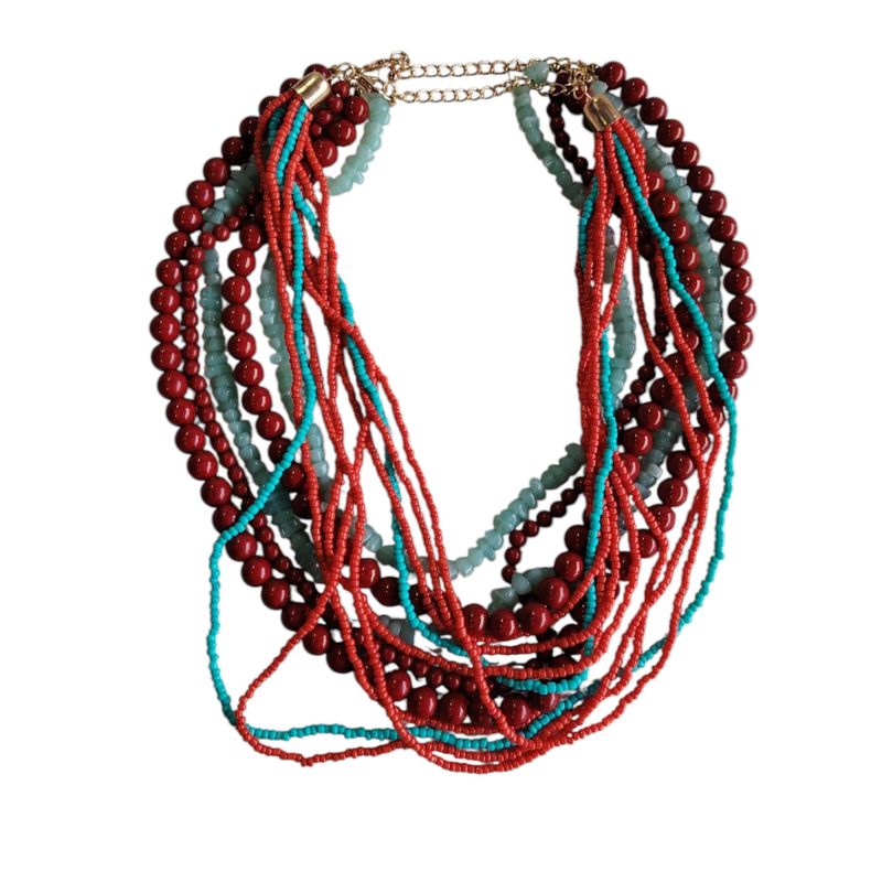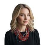 Colier statement multistrat cu mărgele – roșu și turcoaz 25TAI08003