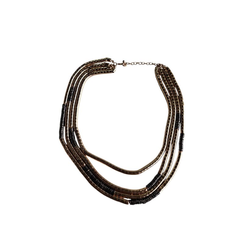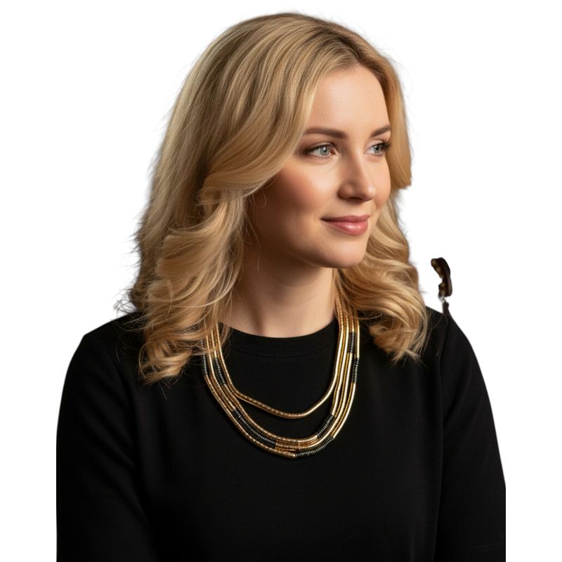 Colier dama multistrat cu mărgele tubulare aurii 25TAI08012