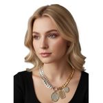 Colier statement cu lanț bicolor și pandantive geometrice 25TAI08018