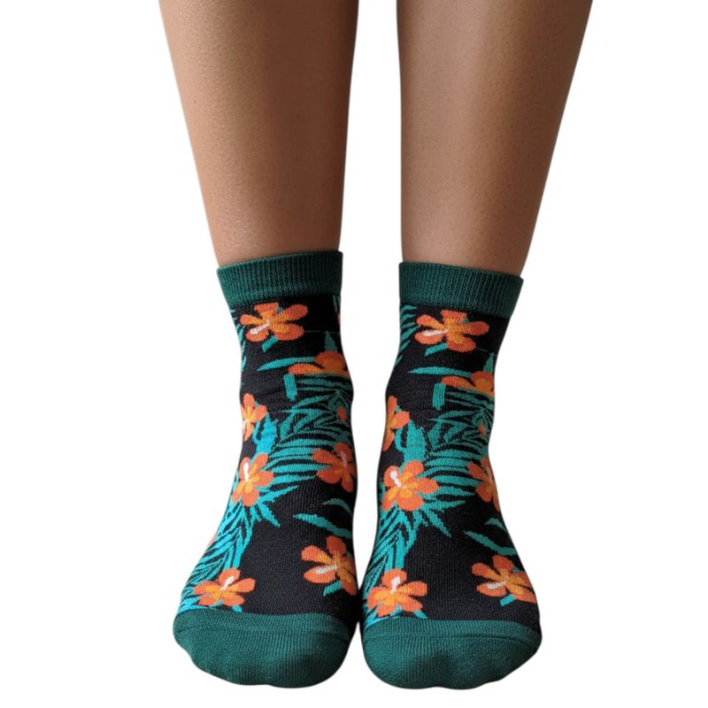 Șosete damă cu imprimeu floral verde 25TAI20056