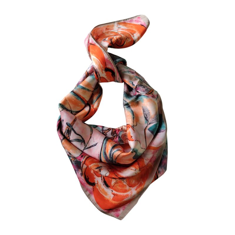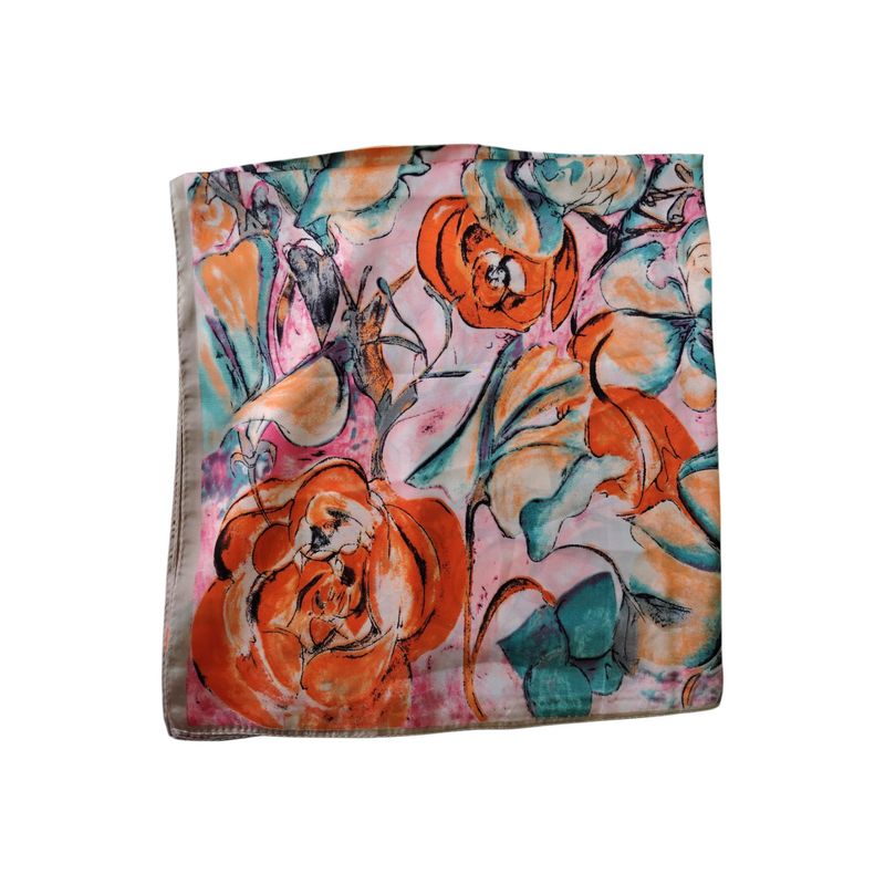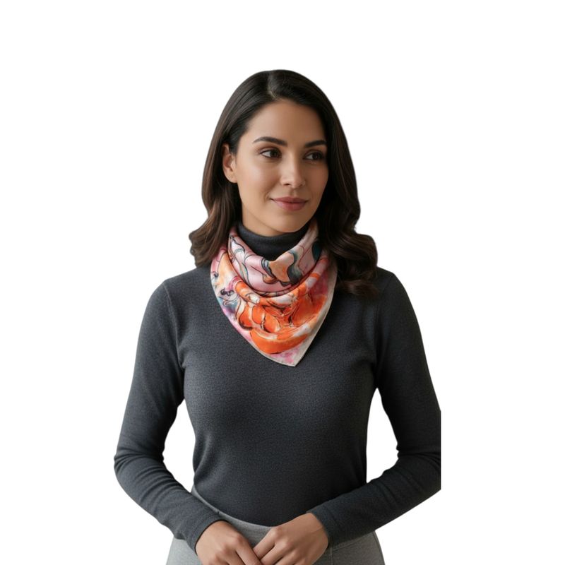 Eșarfă pătrată cu imprimeu artistic în nuanțe calde 25TAI22055